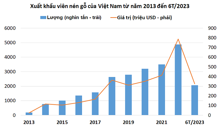 Báo cáo của Hiệp hội gỗ và lâm sản Việt Nam (Viforest) và Tổ chức Forest Trends cho thấy Hàn Quốc và Nhật Bản hiện đang là hai thị trường nhập khẩu viên nén nhiều nhất của Việt Nam, chiếm khoảng 95% tổng lượng và giá trị xuất khẩu viên nén của Việt Nam. Tuy nhiên, tình hình xuất khẩu sang hai thị trường này lại có diễn biến trái ngược trong 6 tháng đầu năm 2023.