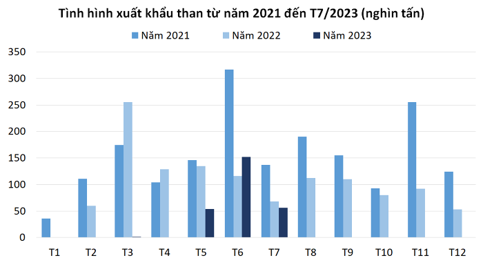 Theo số liệu của Tổng cục Hải quan, xuất khẩu than trong tháng 7 đạt 55.732 tấn, tương đương 15 triệu USD, giảm 63% về lượng và giảm 72% so với tháng 6. So với tháng 7/2022, xuất khẩu than tháng này giảm 60% về lượng và giảm 13% về giá trị.