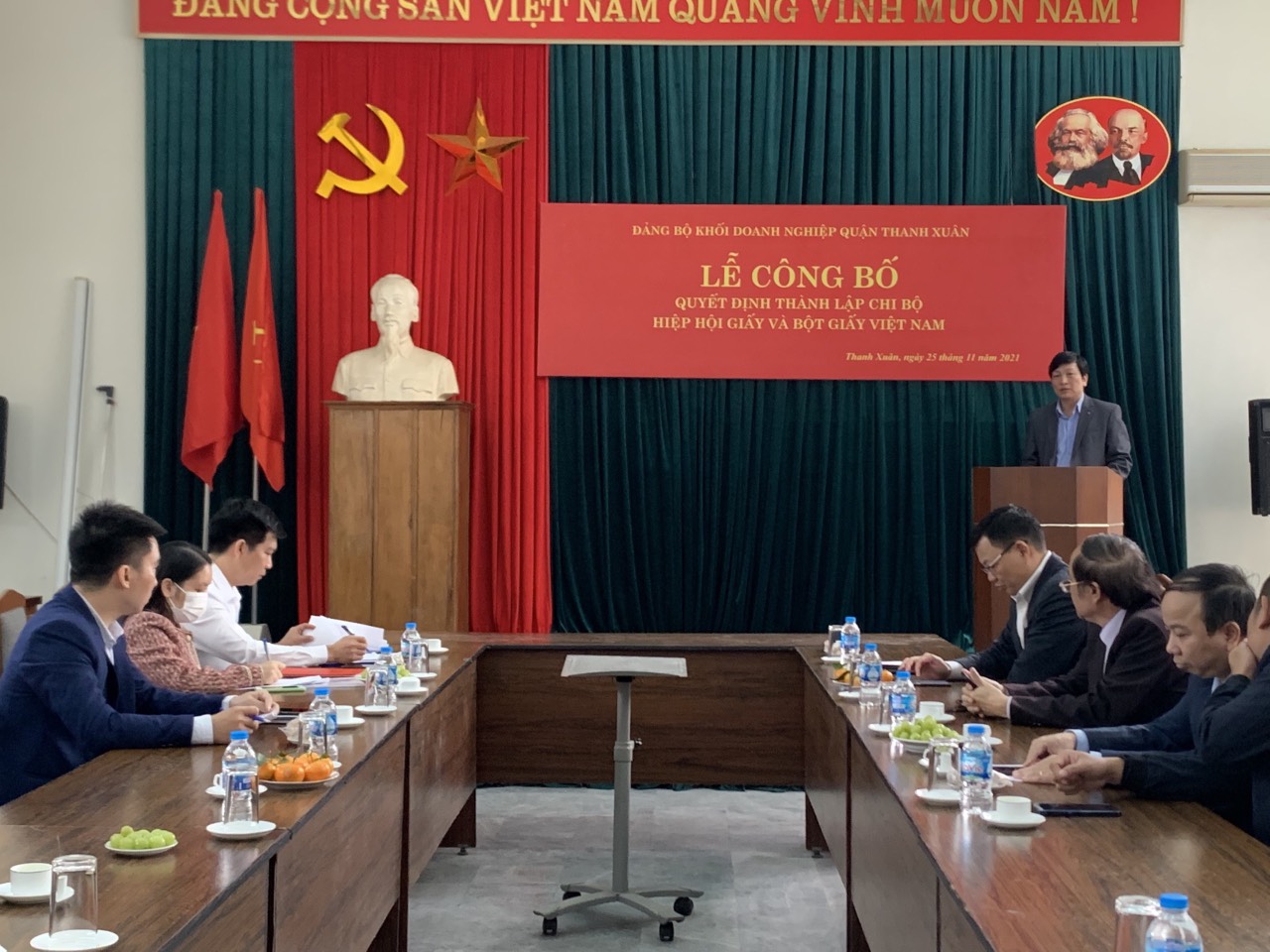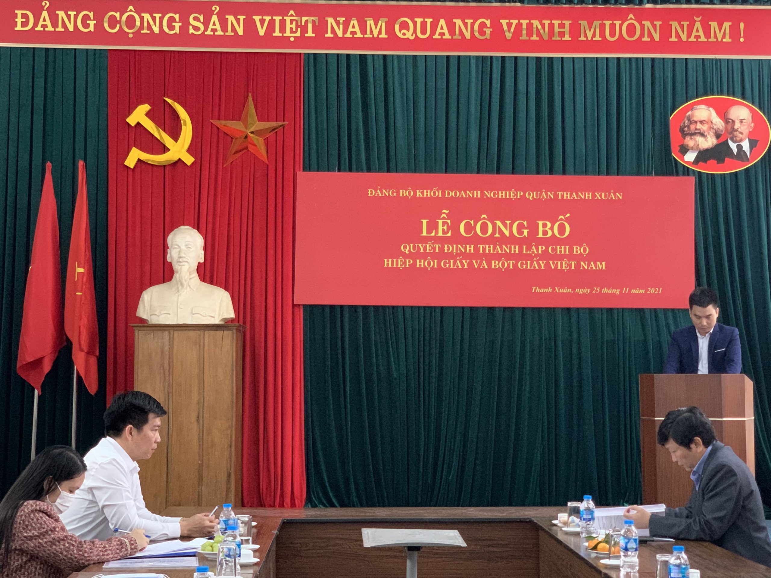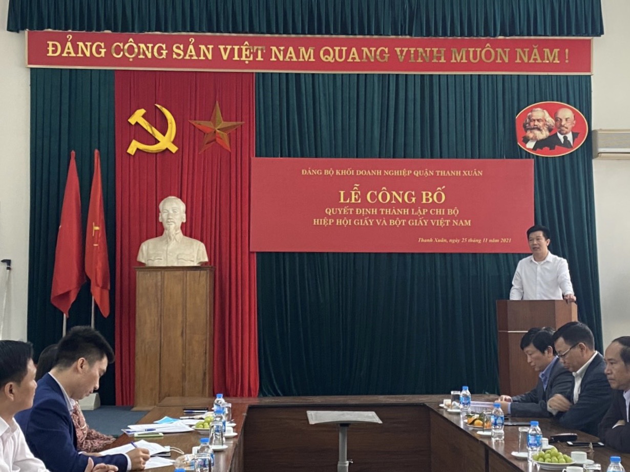 Tại buổi Lễ đồng chí Nguyễn Văn Minh, Quận ủy viên, Bí thư Đảng ủy Khối Doanh nghiệp quận Thanh Xuân đã công bố Quyết định số 280-QĐ/ĐU ngày 25/11/2021 của Đảng ủy khối doanh nghiệp quận Thanh Xuân về việc thành lập Chi bộ Hiệp hội Giấy và Bột giấy Việt Nam gồm 03 đồng chí: đồng chí Lương Chí Hiếu giữ chức vụ Bí thư; đồng chí Đỗ Bình Phương và đồng chí Nguyễn Thế Bảo giữ chức vụ ủy viên.