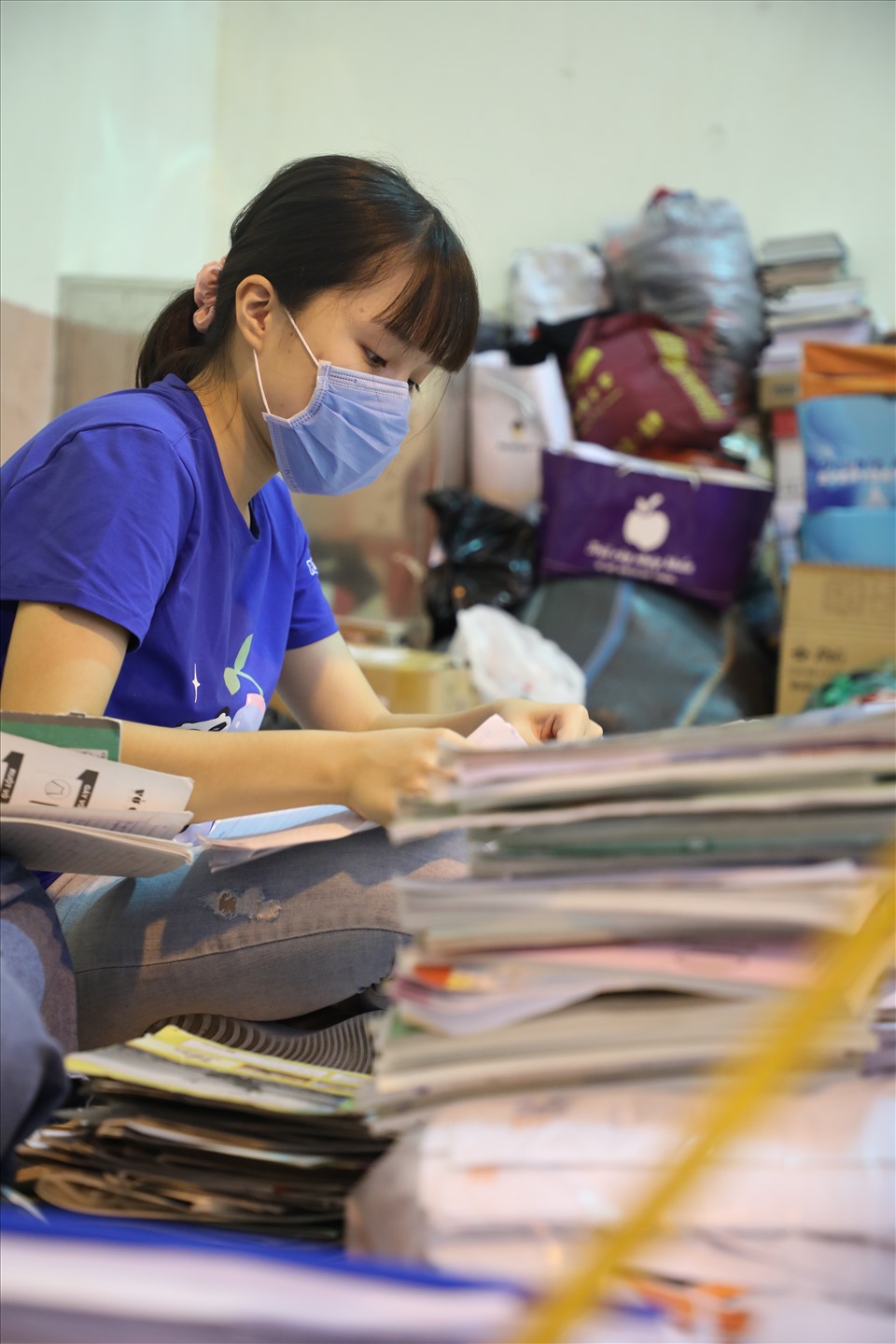 Hoàng Anh được phân công “quản lí” bao tải đen. Mỗi khi các bạn nữ sắp xếp, phân loại sách, báo và truyện xong, Hoàng Anh sẽ buộc lại theo từng chồng và xếp gọn gàng vào chiếc bao tải màu đen.