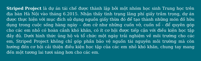 Cùng với Hoàng Anh, 160 thành viên khác của Striped Project cũng đang làm công việc này với mong muốn lan toả thói quen tái chế đến người dân Việt Nam.