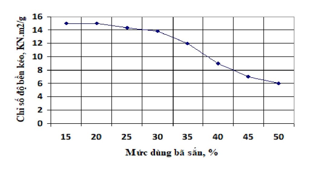Ảnh hưởng của mức dùng bã sắn tới độ bền kéo: