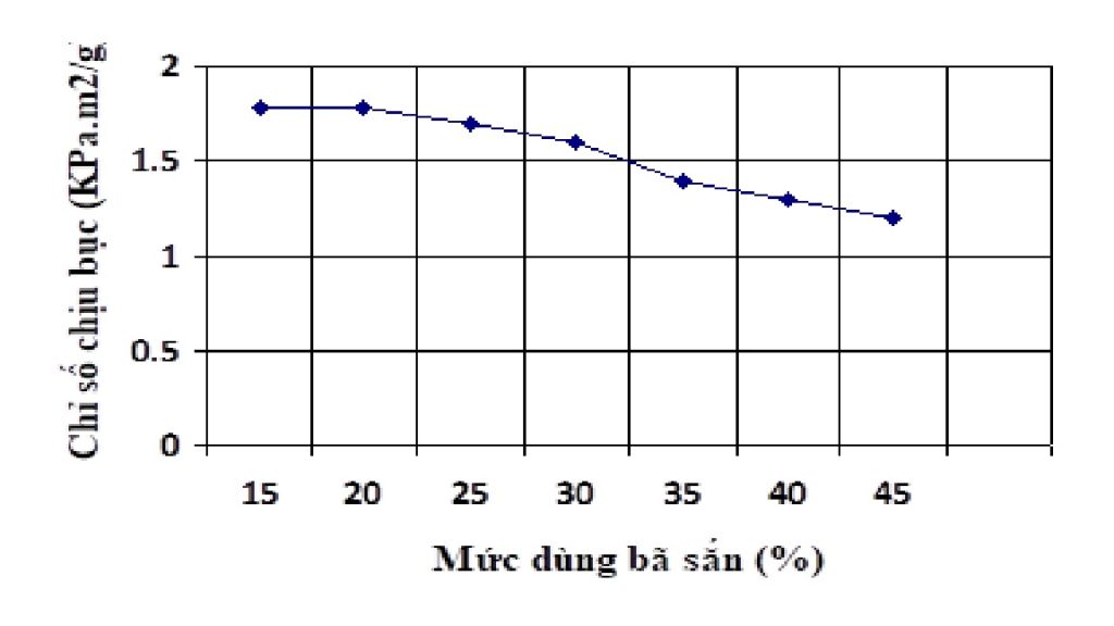 Ảnh hưởng của mức dùng bã sắn tới độ chịu bục: